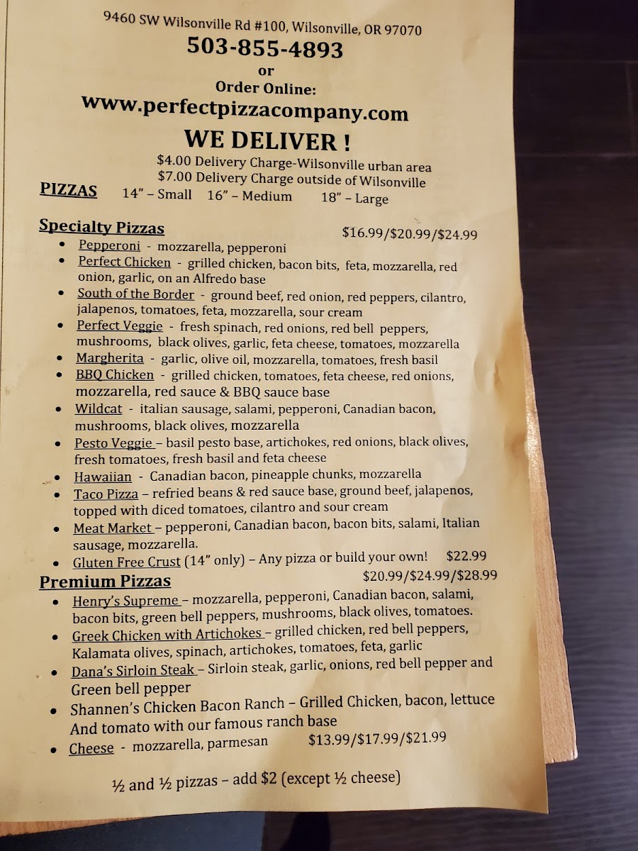 Welcome to the culinary delight that is Perfect Pizza Company, nestled in the heart of Wilsonville, Oregon. Located at 9460 SW Wilsonville Rd, this pizzeria is redefining what it means to enjoy a slice of paradise. With a phone number easy to remember at +1 503-855-4893, this gem is ready to whisk you away into the tantalizing world of fresh, handmade pizzas.